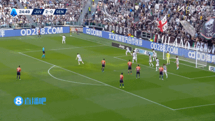 第4分钟,伊尔迪兹左路传中,皮球被顶出来,弧顶位置凯夫伦·图拉姆头球一点,凯利头球接力,布雷默门前第三次头球接力将球打进!尤文图斯1-0领先热那亚↓